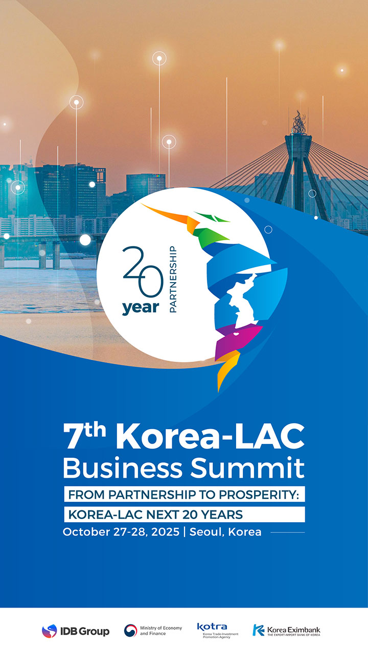 Discover how Korean companies can leverage the BID for the Americas program to access public procurement, trade & investment, and co-financing opportunities across Latin America and the Caribbean. Hear success stories from Korean firms already active in the region, explore our ConnectAmericas platform for targeted business matchmaking, and engage in a live Q&A with IDB experts who will guide you on how to access business opportunities financed by the IDB.
